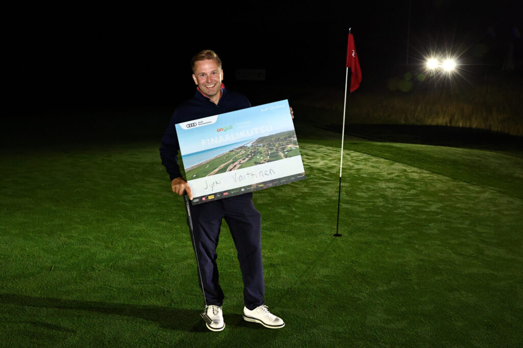 Lucky Winnersin hauskat sattumukset eivät jääneet tuplamestari-Vaittiseen, sillä Cooken seiskareiällä nähtiin upea hole in one. Tuplamestarin peliparin Markku Jääskeläisen veli, Juha Jääskeläinen Alder&Soundista kiskaisi pallonsa Beat the Prona toimineen Mika Piltzin valvovien silmien alla suoraan kuppiin kuitaten itselleen sekä finaalipaikan, että Audin johtajan Tero Lapin edellisillan Etkoilla lupaaman ainutlaatuisen elämysmatkan, jossa ajetaan toinen toistaan upeammilla Audeilla Alppien yli.