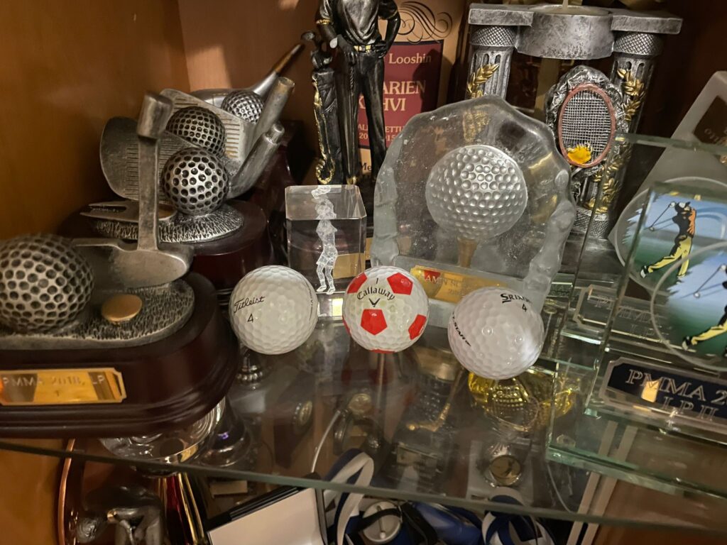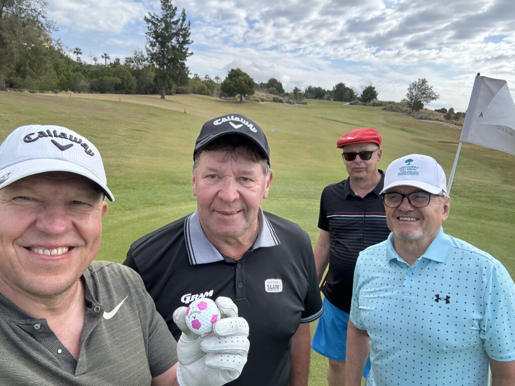 Lakeside Golfin jäsen Petri Hautasuo on harrastanut lajia vuodesta 1991. Lähes kolmen ja puolen vuosikymmenen aikana tamperelainen on nähnyt golfin kaikki puolet, mutta kuluneesta kaudesta muodostui sellainen, jota hän ei olisi ikinä osannut kuvitella. Vuoteen mahtui kolme hole in onea ja yksi golfpallon aiheuttama isku vaaralliseen paikkaan. ”Peli ei sujunut kesällä toiveiden mukaisesti, mutta onhan tämä ollut ikimuistoisin golfkauteni – hyvässä ja vähän ikävämmässäkin mielessä”, Hautasuo kertoo. Kevättalvella Espanjaan suuntautunut matka sai hienon päätöksen, kun Hautasuo oli pelaamassa reissun viimeisenä päivänä Melia Villaitana Golf Clubin Poniente-kentällä. Hän saapui kolmannelle reiälle, par-neloselle, jonka lyöntipaikalta viheriön etureunaan oli 238 metriä ja lipulle kymmenisen metriä enemmän. ”Edellisellä väylällä myytiin holarivakuutuksia, ja ostimme kaverini kanssa sellaisen, mutta ne olivat voimassa vain sille reiälle”, Hautasuo sanoo. Hän ei saattanut sillä hetkellä arvata, mitä kohta tulisi tapahtumaan. Hautasuo nappasi kolmosen tiillä draiverin käteensä, tähtäsi ja löi avauksen lievään alamäkeen. ”Totesin heti, että sehän meni reikään. Muut sanoivat, etteivät näe niin kauas, eikä heillä ollut mitään käsitystä, että pallo olisi reiässä. Kun palloa ei viheriötä lähestyttyämme näkynyt, olin varma, että se on sisällä.” Ja niin se oli. Hautasuon ensimmäinen ”ässä” ja samalla albatrossi näki päivänvalon Benidormin maaliskuisessa auringonpaisteessa. Neljän hengen peliporukka todisti Benidormissa Petri Hautasuon täysosumaa par-nelosella. Kuva: Petri Hautasuo Hole in one par 4 -reiällä on poikkeuksellinen temppu, ja todennäköisyydet mitataan miljoonissa. Jo väylän pituus tekee siitä teoriassakin realistisen vain harvoille pelaajille. ”Olimme Espanjassa kaverini Timon kanssa juhlistamassa lähestyneitä 60-vuotissyntymäpäiviämme – meillä on vain viisi päivää ikäeroa. Ei olisi voinut reissu osaltani mukavammin päättyä.” Ensimmäinen hole in one olisi näin pitkän odotuksen jälkeen monelle riittänyt, mutta tarina sai jatkoa syyskuussa Hautasuon kotikentällä, Lakeside Golfin Järvenrannassa. Hän oli pelaamassa tuolloin keltaiselta tiiltä 147-metristä kentän 12. reikää. Takana oli hermoja koetellut 11. väylä, jolla Hautasuo oli lyönyt kolme palloa pelialueen rajojen ulkopuolelle. ”Golf ei juuri sillä hetkellä paljon kiinnostanut, mutta peli jatkui. Otin rautakuutosen ja sanoin pelikavereille, että nyt lähti hyväntuntuinen lyönti. En jäänyt seuraamaan pallon kulkua, vaan käännyin pois ja lähdin kävelemään kohti bägiä. Kaverit huusivat, että kuppiin meni. Tuumailin ensin, että höpöhöpö, mutta siellähän se oli. Kuulemma metri ennen lippua oli pudonnut ja rullannut reikään.” Reilut kaksi viikkoa myöhemmin, lokakuun alussa, tapahtui taas – samalla kentällä, samalla reiällä ja sama Callawayn Rogue Pro -rautakuutonen kädessä. Omia holareitani yhdistää se, että ne olivat kaikki hyviä osumia – kunnon lyöntejä. Hautasuo pelasi Espanjan-matkakaverinsa Timon kanssa samassa ryhmässä scramble-kilpailua, joskin eri joukkueissa. Vastatuuli puhalsi navakasti, ja 12. reiän tiimerkit oli tuotu olosuhteiden vuoksi tavallista edemmäs. Matkaa lipulle oli 131 metriä. ”Ajattelin, että nyt katson, mihin pallo menee, ja jälleen se putosi metri ennen reikää ja vierähti oikeaan osoitteeseen. Siinä vaiheessa alkoi naurattaa, ettei tämä voi olla totta. Ja Timo oli taas todistamassa tapahtunutta.” Yksi yksityiskohta teki sattumuksesta vielä erikoisemman. ”Myös tällä kertaa olin lyönyt edellisellä reiällä pallon outtiin. Nyt tosin vain yhden pallon.” Holaripallot ovat löytäneet paikkansa palkintokaapista. Kuva: Petri Hautasuo Hautasuolla oli ollut 20 vuotta hole in one -vakuutus, mutta tänä vuonna hän jätti sen ottamatta. Klubilla kuitenkin nautittiin molemmilla kerroilla pelikavereiden ja kentän henkilökunnan kanssa kuohuvaa juomaa. Hän kertoo kuulleensa tarinoita monenlaisista holareista, onnenkantamoisista, jotka ovat kimpoilleet puista tai kivien kautta viheriölle ja reikään. ”Ainahan hole in onessa on onnea mukana, mutta omia holareitani yhdistää se, että ne olivat kaikki hyviä osumia – kunnon lyöntejä. Se lämmittää mieltä, ja saa maistumaan holarit vieläkin paremmalta.” Ikimuistoiseen kauteen mahtui myös pelottava hetki. Keväällä Hautasuo sai golfpallon päähänsä kesken kierroksen Järvenranta-kentällä. ”Olin nelosväylällä, noin sata metriä viheriöstä. Vastakkaiselta väylältä kuului myöhäinen fore-huuto, ja ehdin vain vähän painaa päätä alaspäin, kun tiiltä draiverilla vinoon lyöty pallo osui keskelle päätäni. Se pomppasi siitä ehkä 30–40 metriä, ja kaaduin heti maahan.” Peliryhmässä sattui olemaan pelastusalan ammattilainen, joka tarkasti nopeasti Hautasuon tilanteen, ja haki hänelle klubilta ensihätään jääpussin ja särkylääkettä. ”Olin hetken tokkurassa, mutta jonkin aikaa odoteltuani tunsin oloni hyväksi. Päätin sitten pelata kierroksen loppuun. Jälkeenpäin kävin lääkärissä ja selvisin tapahtuneesta isolla kuhmulla. Terveydenhoitaja sanoi, että onneksi pallo osui sellaiseen kohtaan, missä on paljon luuta. Vältyin mahdollisesti pahemmilta seurauksilta.” ”Fore-huuto olisi saanut tulla vähän aikaisemmin”, tasoituksella 11,6 pelaava Hautasuo sanoo. Hautasuon 34. golfvuosi jää historiaan. Kolme ässää, joista ensimmäinen syntyi par 4 -reiällä, ja yksi onnettomuus, josta hän selvisi säikähdyksellä – siinä on yhdelle kaudelle tapahtumia enemmän kuin monella golfarilla koko peliuran aikana. Oletko ottanut golfvakuutuksen uudelleen? ”Ajattelin, että en tänä vuonna ota, jos vaikka vielä sattuisin onnistumaan. Jos vakuutuksen nyt ottaisin, ei takuulla tulisi lisää holareita. Pelaan sy