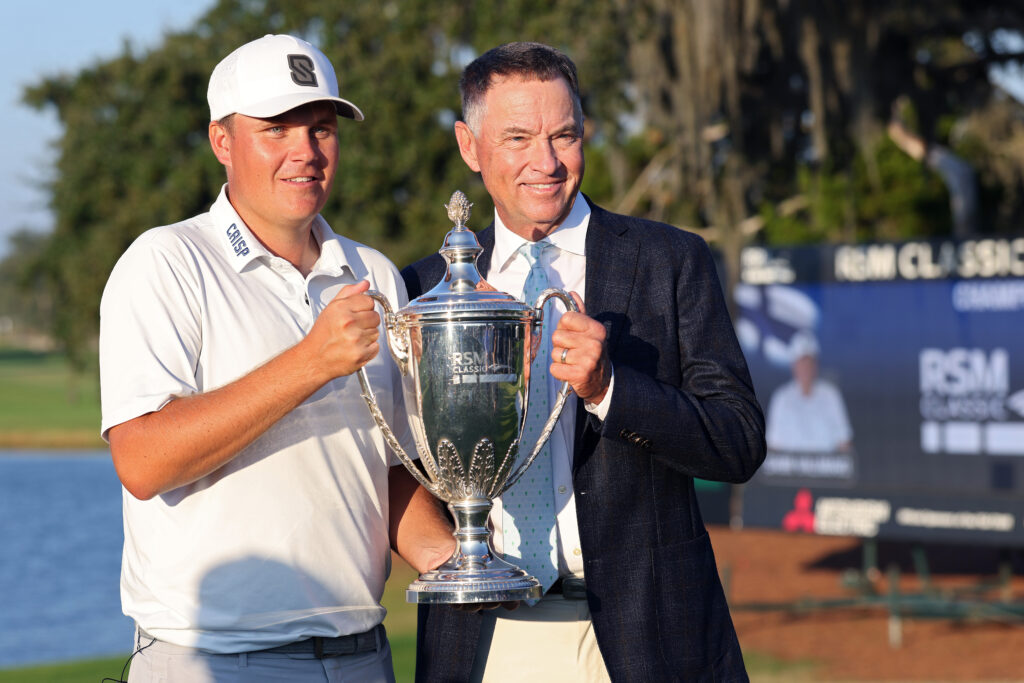 Sami Välimäen ensimmäinen PGA Tour -voitto toi hänelle tullessaan paljon muitakin mukavia asioita. Hän ansaitsi saavutuksellaan 39,1 maailmanlistan pistettä ja nousi rankingissa 58 pykälää, sijalle 40. Maailmanlistan top 50:ssä vuoden viimeisessä listapäivityksessä olevat pelaajat saavat automaattisen osallistumisoikeuden ensi kevään Mastersiin, ja Välimäki on joulukuussa suurella todennäköisyydellä heidän joukossaan. Välimäen edellinen listaennätys oli peräisin tammikuulta 2021, jolloin hänet rankattiin 68:nneksi. Välimäkeä korkeammalla suomalaisista on ollut ainoastaan Mikko Ilonen, jonka sijoitus lokakuussa 2014 oli 37:s. Välimäen nousu on merkittävä, sillä hänen edellään OWGR-listalla pohjoismaalaisista ovat vain Viktor Hovland, Ludvig Åberg, Alex Norén sekä Rasmus Højgaard. Ilosen ja Välimäen ohella suomalaisista myös Mikko Korhonen on yltänyt urallaan maailmanlistalla sadan parhaan joukkoon. Hänet noteerattiin toukokuussa 2019 sijalle 84. Suomalaisista vain Ilonen on pelannut kauden ensimmäisessä major-kilpailussa, The Mastersissa. Hän osallistui The Amateur Championshipin hallitsevana mestarina vuoden 2001 Mastersiin ja sai maailmanlistasijoituksensa ansiosta paikan kilpailuun toistamiseen vuonna 2015. Nousu FedEx Cup Fall -listan top 60:een tarkoittaa sitä, että Välimäki nähdään helmikuussa peräkkäisinä viikkoina pelattavassa kahdessa Signature-kilpailussa, AT&T Pebble Beach Pro-Amissa sekä Tiger Woodsin isännöimässä The Genesis Invitationalissa. Hänelle avautuu pääsy myös The Players Championshipiin sekä toukokuussa Aronimink Golf Clubilla pelattavaan PGA Championshipiin. Suomalaisässän uran komein saavutus tuli major-voittaja Davis Love III:n isännöimässä turnauksessa. Kuva: Getty Images Varmin keino päästä kauden kahteen viimeiseen majoriin, U.S. Openiin ja The Openiin on pysytellä maailmanlistalla top 50:ssä. Ensin mainittuun paikka voi tulla hieman heikommallakin listasijoituksella. Kohentuneet sijoitukset FedEx Cupissa ja maailmanlistalla merkitsevät sitä, että Välimäki pelaa ensi talven kisoissa kuumemmissa ryhmissä ja hän tulee saamaan kierroksilleen seuraa aiempaa tunnetuimmista golfareista. Välimäen kokonaistienestit pääkiertueilla nousivat uran suurimman palkintosumman siivittämänä lähes 7,5 miljoonaan euroon. Suomalaisten ansiolistan kärjessä on Ilonen, mutta etumatkaa Välimäkeen on enää noin 200 000 euroa.