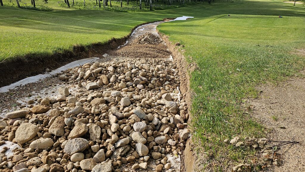 ”Voi olla edullisempaa ja myös pelaajille helpompaa, että järjestelmä uusitaan yhdellä kertaa, esimerkiksi yhdeksän reikää kerrallaan. Muuten kentällä on jatkuvasti työmaita.”