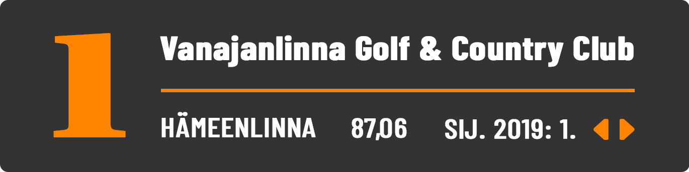 | 1 | 0 | -0.68 | Vanajanlinna Golf & Country Club | 87.06 | 9.06 | 9.18 | 8.87 | 8.32 | 8.78 | 8.53 | 8.87 | 7.36 |