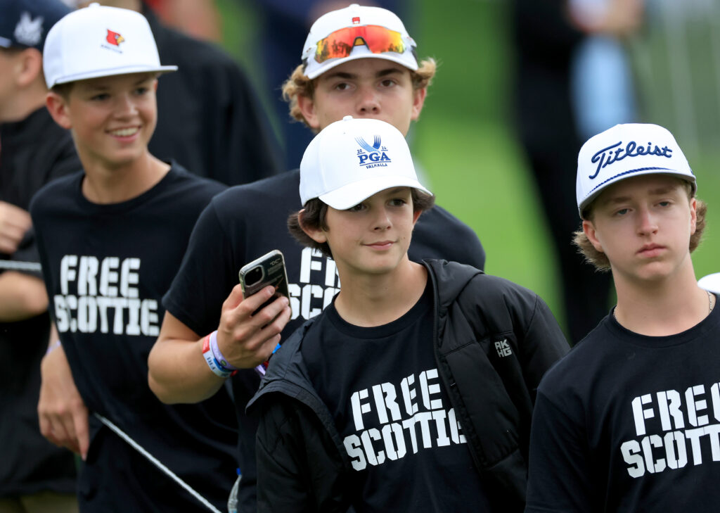 Scottie Schefflerin pidätykseen viittaavat paidat kävivät perjantaina kaupaksi. Kuva: Getty Images