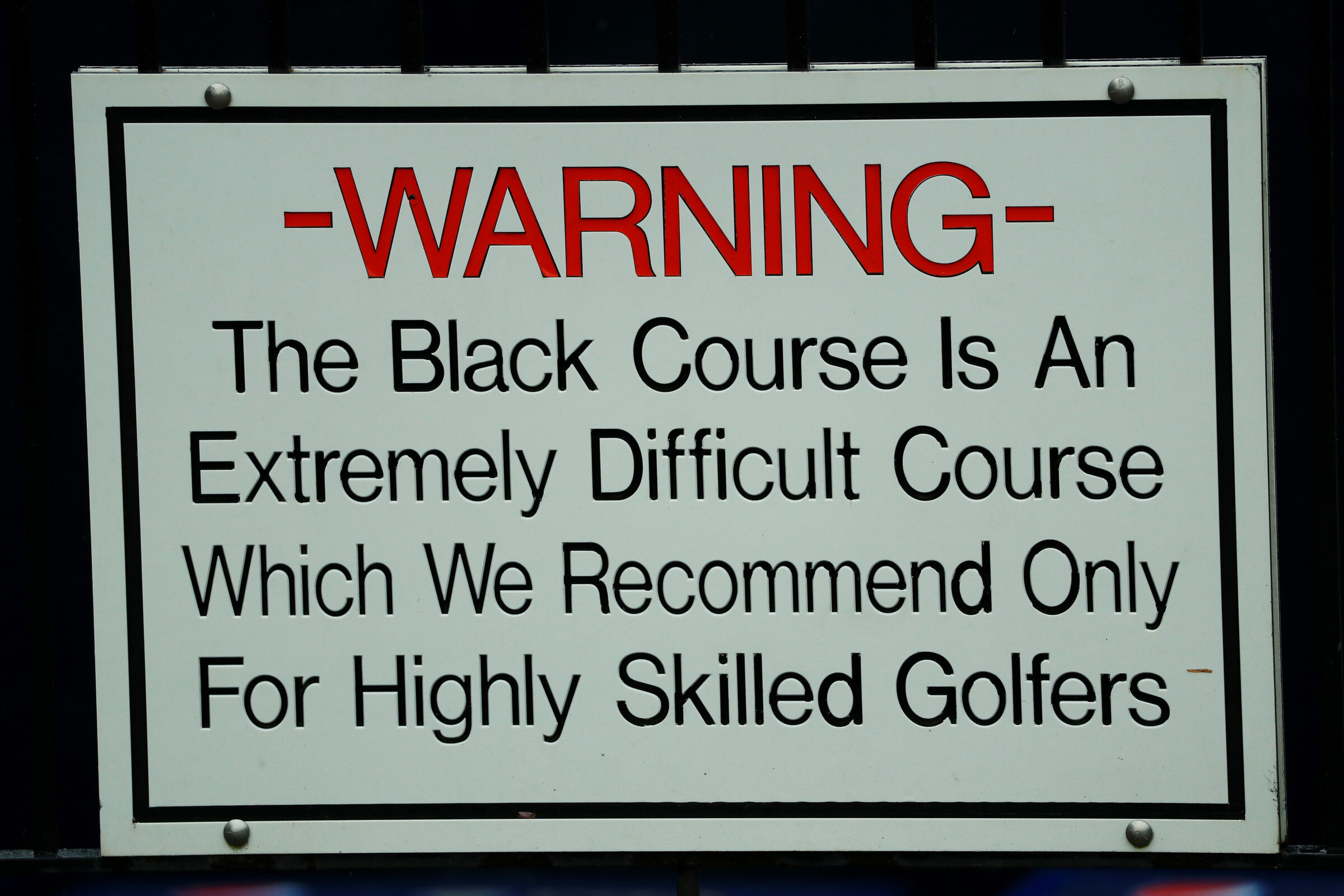 Tämä kyltti kuvaa osuvasti yhtä maailman vaikeinta turnauskenttää. Kuva: Getty Images