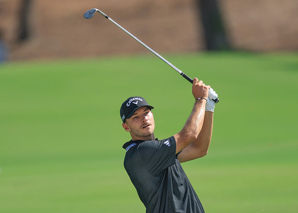 Nicolai Højgaard on pelannut 12 ensimmäistä reikää toisesta kierroksestaan kuusi alle parin. Getty Images.