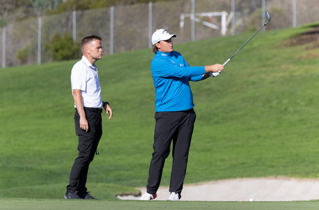 ”Onko se Sammy? Vai miten se kirjoitetaan?” Suomalaiset ovat tottuneet ulkomailla siihen, että suomalaiset nimet ovat hankalia muiden maiden kansalaisten suuhun. Sami Välimäki ja Väinö Viitaharju ovat tottuneet tavaamaan nimiään aiemmin DP World Tourilla, mutta nyt nimistä saa tehdä selkoa PGA Tourilla. ”Aina se on sama meno”, Välimäki nauraa, kun hän on selvittänyt Farmers Insurance Openin harjoituskierroksella pelikaveriksi sattuneelle Scott Gutschewskille ja tämän caddielle, kuinka Sami kirjoitetaan. Ja jotta asia menee helpoiten perille, Välimäki nostaa bäginsä pystyyn, josta nimi näkyy. Sama tarina on Väinö Viitaharjulla, Välimäen caddiella. Väinö vääntyy nopeasti Wayneksi, kun nelikko naureskelee nimille. Mutta se nimistä. Välimäki starttaa uransa kolmanteen PGA Tour -kilpailuun poikkeuksellisesti jo keskiviikkona, ja kisa on paketissa lauantaina. Farmers Insurance Open on muutaman vuoden ajan antanut suosiolla tietä NFL:n konferenssifinaaleille, jotka pelataan sunnuntaina. Siinä tv-taistelussa ei olisi PGA Tourille kuin hopeaa tarjolla. Välimäen tiistain harjoituspäivä käynnistyi aamulla yhdeksän pintaan parin tunnin rangesessiolla. Treenituokion alkuun hänellä oli apunaan valmentaja Liam James, jonka kanssa Välimäki työsti pääasiassa parempaa ylävartalon kiertoa taakseviennissä. ”Se on minulla ongelmana, että paino meinaa jäädä liikaa vasemmalle, ja ylävartalo kippaa liikaa kohteelle. Siitä sitten alastulossa ylävartalo heilahtaa toiseen suuntaan ja joudun flippaamaan osumaan”, Välimäki kertoo päivän harjoitusteemasta. Kaikki sanovat, että anna aikaa pelille, kyllä se sieltä tulee. Ehkä se näin on… Sanotaan, ettei tässä ole henkisesti ollut parhaat kaksi viikko. Kesken svingiharjoittelun Välimäki ja hänen vieressään harjoitellut Ruotsin Vincent Norrman – hänkin Jamesin valmennettavia – olivat tulilinjalla, kun rangen toisesta päästä lyöty draivi otti loikan tiestä ja tuli pelaajien välistä kovalla vauhdilla rangen taka-aitaan. Läheltä piti, mutta vahingoilta onneksi vältyttiin. Sami Välimäki harjoitteli tiistaina lähestymislyöntejä Liam Jamesin valvovan silmän alla. Kuva: Juha Hakulinen Rangetreenin ja lounaan jälkeen Välimäki ja Viitaharju suuntasivat harjoituskierrokselle North-kentälle. Maanantain harjoituskierros South-kentälle jäi pelaamatta San Diegoa piiskanneen hurjan vesisateen takia, mutta he pääsivät kuitenkin kävelemään puolet kentästä, kun sade oli hieman laantunut. ”Siellä oli vähän muodokkaammat griinit kuin Northilla. Etuysiä en ole nähnyt, että se mennään vähän sumussa. Mutta mitä videoista on nähnyt, niin eipä siellä mitään ihmeellistä. Siellä on väylä, ja siihen on osuttava”, Välimäki summaa voittavan pelitaktiikan Torrey Pinesin molemmille kentille. Torrey Pines on Välimäelle kolmas uusi kenttä kolmeen viikkoon. Ja sama meno tulee jatkumaan koko kauden ajan, sillä vanhat tutut kentät loistavat poissaolollaan uudella kiertueella. ”Se on ollut aika raskasta, kun on aina uusi kenttä. Se on vienyt paljon energiaa alkukaudesta.” Välimäen PGA Tour -ura on alkanut kahdella karsiutumisella. Välimäki myöntää, että parempien tulosten odottaminen ja luottaminen siihen, että tehty työ kantaa hedelmää PGA Tourillakin, on haastavaa. ”Kaikki sanovat, että anna aikaa pelille, kyllä se sieltä tulee. Ehkä se näin on. Mutta se on itselle hieman haastavaa. Olen pikkaisen tulosriippuvainen. Sanotaan, ettei tässä ole henkisesti ollut parhaat kaksi viikkoa”, keskiviikkona kello 19.45 Suomen aikaa kilpailunsa North-kentältä käynnistävä Välimäki toteaa suoraan. Välimäen peliseurana kahdella ensimmäisellä kierroksella ovat Blaine Hale Jr. ja Marcus Byrd. Yksi Farmers Insurance Openin isoimmista voittajakandidaateista on kotikylän mainetta ylläpitävä Xander Schauffele. San Diegosta kotoisin oleva maailmanlistan viitonen oli puheliaalla tuulella kisan aaton mediatilaisuudessa. Ensimmäiseksi Schauffele joutui vastaamaan kysymykseen, onko viime viikon Palm Springsin ja tämän viikon kisan välinen kontrasti kisojen haastavuudessa suurin, mitä he kauden aikana kohtaavat? ”Nopeasti kun miettii, niin kyllä tämä taitaa olla. US Openin jälkeen saattaa olla toinen yhtä dramaattinen ero kentissä. Mutta viime viikko oli pelkkää täydellistä pallon makuuta, mutta tämän päivän yhdeksän reiän kierros oli hyvä herätys, mikä tällä viikolla odottaa”, Schauffele kommentoi. Torrey Pinesin South- ja North-kentät eroavat toisistaan aika reilusti, sen Schauffelekin nosti esiin. ”South on peto. Northillakin on vähän enemmän haastetta tänä vuonna, kun maanantaina tuli vettä niin paljon, ja kenttä pelaa aika pitkänä. Sen lisäksi raffi on älyttömän pitkää. Se kuka pelaa griinien ympäristön raffeista parhaiten, on tällä viikolla vahvoilla.”Läheltä piti -tilanne rangella